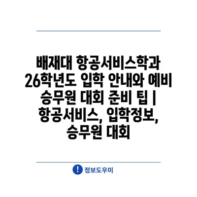 배재대 항공서비스학과 26학년도 입학 안내와 예비 승무원 대회 준비 팁 | 항공서비스, 입학정보, 승무원 대회