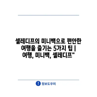 셀레디프의 미니백으로 편안한 여행을 즐기는 5가지 팁 | 여행, 미니백, 셀레디프”