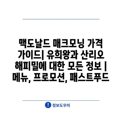 맥도날드 매크모닝 가격 가이드| 유희왕과 산리오 해피밀에 대한 모든 정보 | 메뉴, 프로모션, 패스트푸드