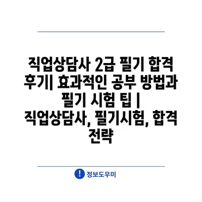 직업상담사 2급 필기 합격 후기| 효과적인 공부 방법과 필기 시험 팁 | 직업상담사, 필기시험, 합격 전략