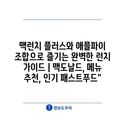 맥런치 플러스와 애플파이 조합으로 즐기는 완벽한 런치 가이드 | 맥도날드, 메뉴 추천, 인기 패스트푸드”