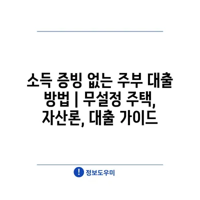 소득 증빙 없는 주부 대출 방법 | 무설정 주택, 자산론, 대출 가이드