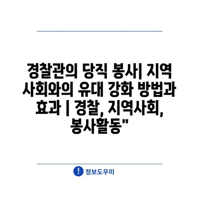 경찰관의 당직 봉사| 지역 사회와의 유대 강화 방법과 효과 | 경찰, 지역사회, 봉사활동”