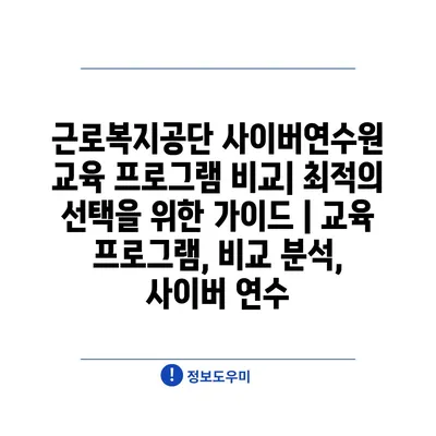 근로복지공단 사이버연수원 교육 프로그램 비교| 최적의 선택을 위한 가이드 | 교육 프로그램, 비교 분석, 사이버 연수