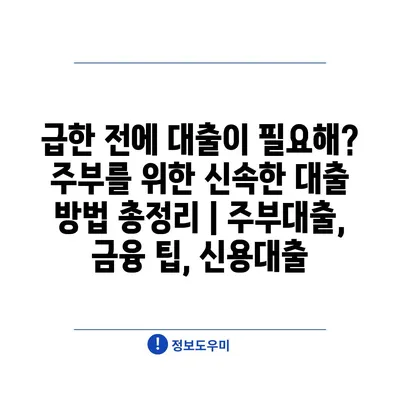 급한 전에 대출이 필요해? 주부를 위한 신속한 대출 방법 총정리 | 주부대출, 금융 팁, 신용대출