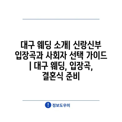 대구 웨딩 소개| 신랑신부 입장곡과 사회자 선택 가이드 | 대구 웨딩, 입장곡, 결혼식 준비
