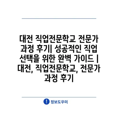 대전 직업전문학교 전문가 과정 후기| 성공적인 직업 선택을 위한 완벽 가이드 | 대전, 직업전문학교, 전문가 과정 후기