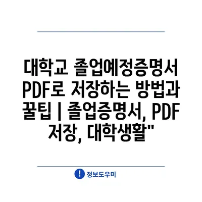 대학교 졸업예정증명서 PDF로 저장하는 방법과 꿀팁 | 졸업증명서, PDF 저장, 대학생활”