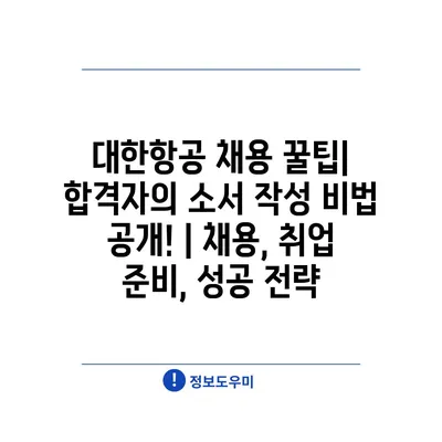 대한항공 채용 꿀팁| 합격자의 소서 작성 비법 공개! | 채용, 취업 준비, 성공 전략