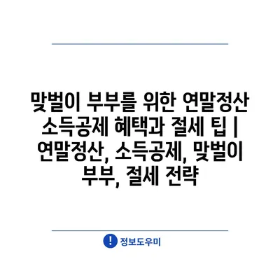 맞벌이 부부를 위한 연말정산 소득공제 혜택과 절세 팁 | 연말정산, 소득공제, 맞벌이 부부, 절세 전략