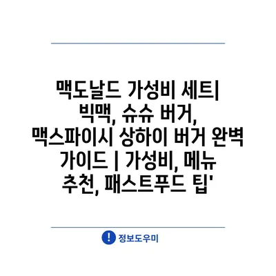 맥도날드 가성비 세트| 빅맥, 슈슈 버거, 맥스파이시 상하이 버거 완벽 가이드 | 가성비, 메뉴 추천, 패스트푸드 팁’