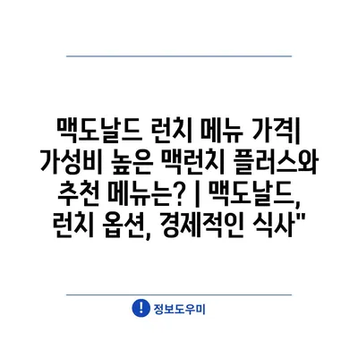 맥도날드 런치 메뉴 가격| 가성비 높은 맥런치 플러스와 추천 메뉴는? | 맥도날드, 런치 옵션, 경제적인 식사”