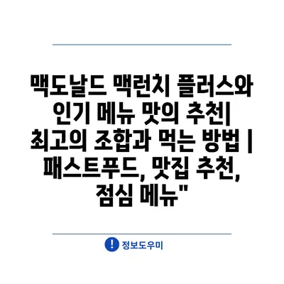맥도날드 맥런치 플러스와 인기 메뉴 맛의 추천| 최고의 조합과 먹는 방법 | 패스트푸드, 맛집 추천, 점심 메뉴”