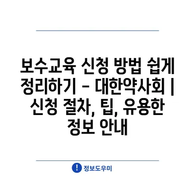 보수교육 신청 방법 쉽게 정리하기 – 대한약사회 | 신청 절차, 팁, 유용한 정보 안내