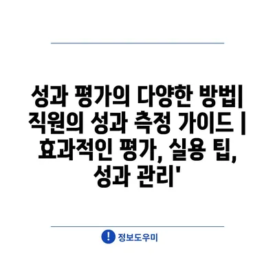 성과 평가의 다양한 방법| 직원의 성과 측정 가이드 | 효과적인 평가, 실용 팁, 성과 관리’