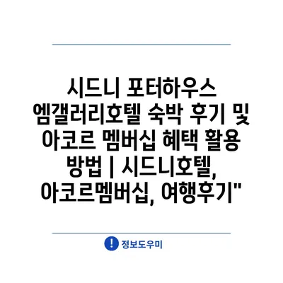 시드니 포터하우스 엠갤러리호텔 숙박 후기 및 아코르 멤버십 혜택 활용 방법 | 시드니호텔, 아코르멤버십, 여행후기”