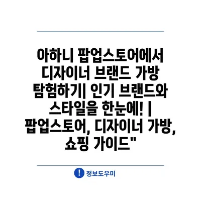 아하니 팝업스토어에서 디자이너 브랜드 가방 탐험하기| 인기 브랜드와 스타일을 한눈에! | 팝업스토어, 디자이너 가방, 쇼핑 가이드”