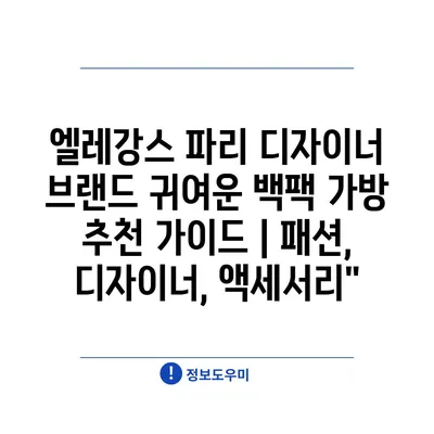 엘레강스 파리 디자이너 브랜드 귀여운 백팩 가방 추천 가이드 | 패션, 디자이너, 액세서리”