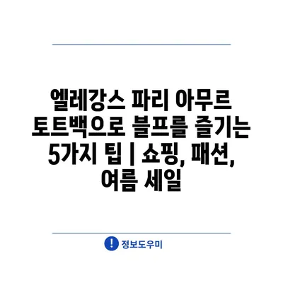 엘레강스 파리 아무르 토트백으로 블프를 즐기는 5가지 팁 | 쇼핑, 패션, 여름 세일