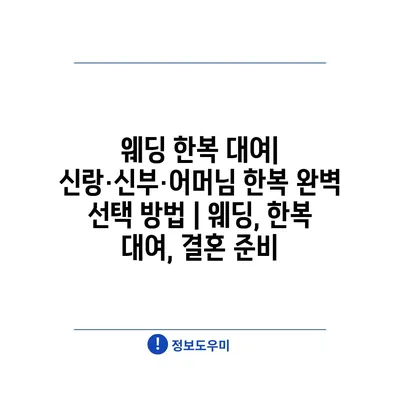 웨딩 한복 대여| 신랑·신부·어머님 한복 완벽 선택 방법 | 웨딩, 한복 대여, 결혼 준비