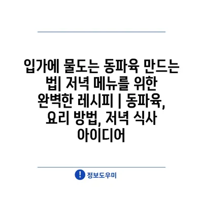 입가에 물도는 동파육 만드는 법| 저녁 메뉴를 위한 완벽한 레시피 | 동파육, 요리 방법, 저녁 식사 아이디어 동파육은 살코기와 지방이 어우러져 부드러운 식감과 깊은 맛을 자랑하는 중국식 요리입니다. 레시피가 복잡해 보일 수 있지만, 몇 가지 간단한 단계로 집에서도 쉽게 만들 수 있습니다. 먼저, 삼겹살을 잘 손질한 후 끓는 물에 blanching하여 불순물을 제거합니다. 그 후 간장, … Read more