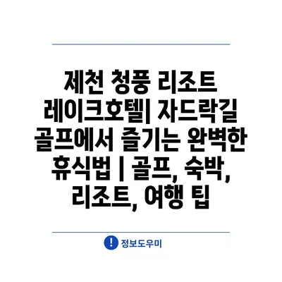 제천 청풍 리조트 레이크호텔| 자드락길 골프에서 즐기는 완벽한 휴식법 | 골프, 숙박, 리조트, 여행 팁
