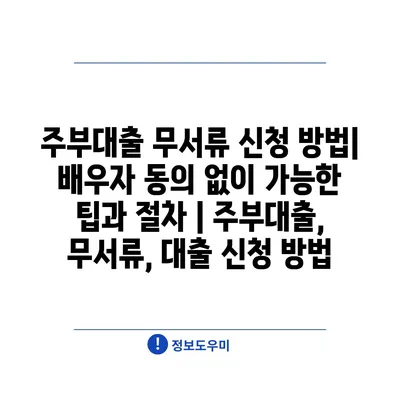 주부대출 무서류 신청 방법| 배우자 동의 없이 가능한 팁과 절차 | 주부대출, 무서류, 대출 신청 방법