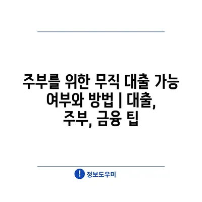 주부를 위한 무직 대출 가능 여부와 방법 | 대출, 주부, 금융 팁