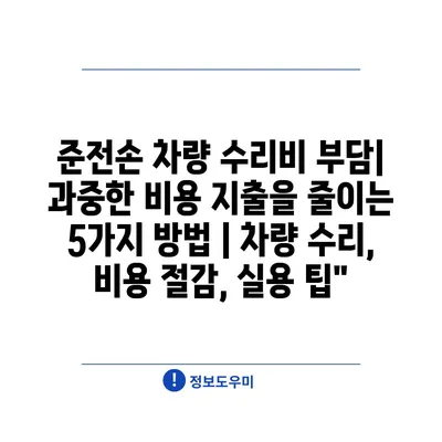 준전손 차량 수리비 부담| 과중한 비용 지출을 줄이는 5가지 방법 | 차량 수리, 비용 절감, 실용 팁”
