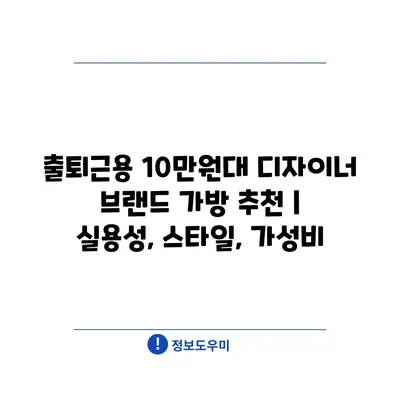 출퇴근용 10만원대 디자이너 브랜드 가방 추천 | 실용성, 스타일, 가성비