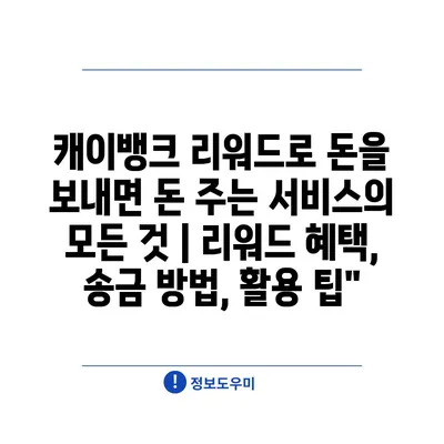 캐이뱅크 리워드로 돈을 보내면 돈 주는 서비스의 모든 것 | 리워드 혜택, 송금 방법, 활용 팁”