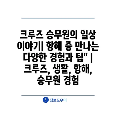 크루즈 승무원의 일상 이야기| 항해 중 만나는 다양한 경험과 팁” | 크루즈, 생활, 항해, 승무원 경험