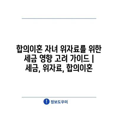 합의이혼 자녀 위자료를 위한 세금 영향 고려 가이드 | 세금, 위자료, 합의이혼