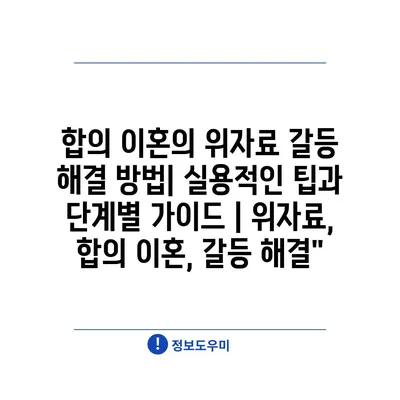 합의 이혼의 위자료 갈등 해결 방법| 실용적인 팁과 단계별 가이드 | 위자료, 합의 이혼, 갈등 해결”