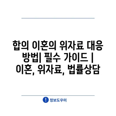 합의 이혼의 위자료 대응 방법| 필수 가이드 | 이혼, 위자료, 법률상담