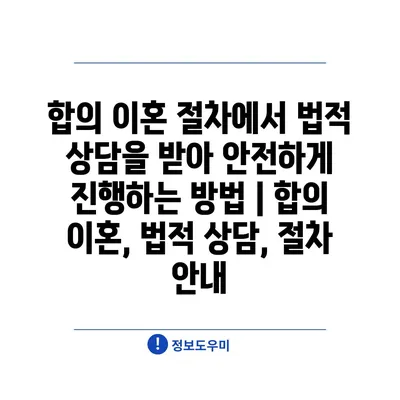 합의 이혼 절차에서 법적 상담을 받아 안전하게 진행하는 방법 | 합의 이혼, 법적 상담, 절차 안내