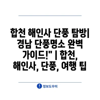 합천 해인사 단풍 탐방| 경남 단풍명소 완벽 가이드!” | 합천, 해인사, 단풍, 여행 팁