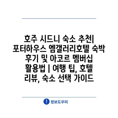 호주 시드니 숙소 추천| 포터하우스 엠갤러리호텔 숙박 후기 및 아코르 멤버십 활용법 | 여행 팁, 호텔 리뷰, 숙소 선택 가이드