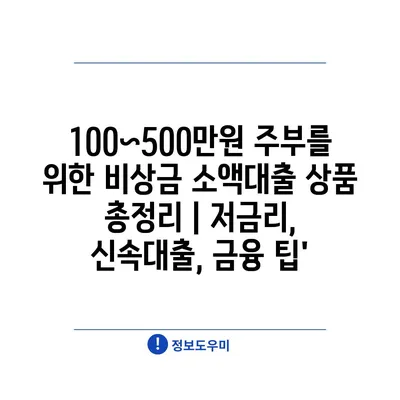 100~500만원 주부를 위한 비상금 소액대출 상품 총정리 | 저금리, 신속대출, 금융 팁’